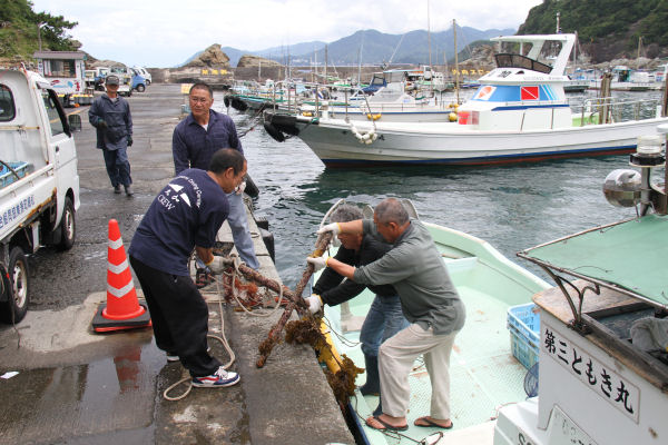 - 伊豆漁協松崎支所では、夏の海水浴やダイビングシーズンを前に、雲見ダイビングクラブ会員や青壮年部雲見支部部員によって、河川等から流出し、海底に溜まっているゴミの回収作業を行いました。