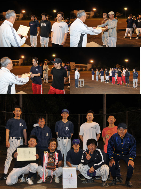 - 昨晩、総合グラウンドでは、生涯学習ソフトボール春季大会の決勝戦が行われ、江奈3区が宮内区を下し、優勝しました。