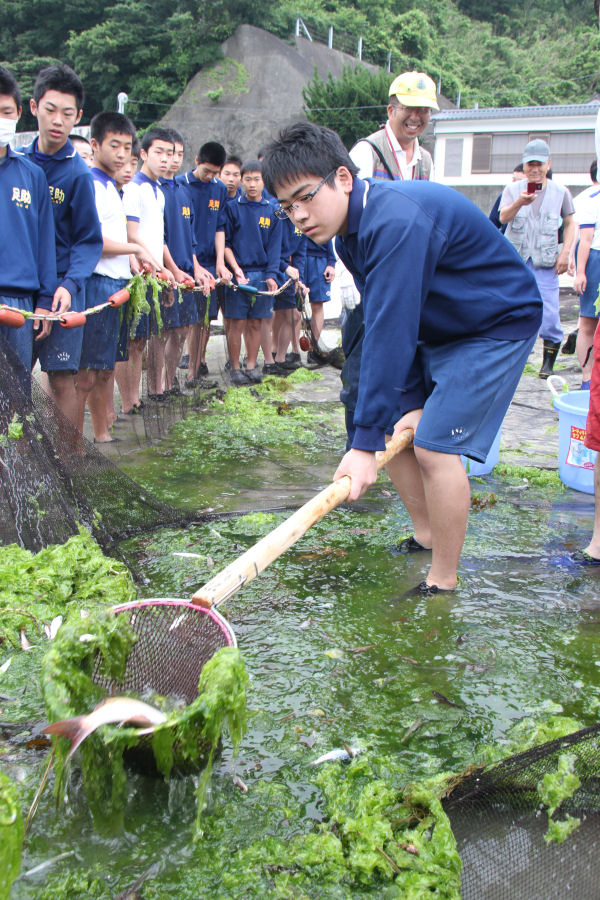 - 昨日から岩地地区に訪れている修学旅行生は、地引網体験やカナディアンカヌーの体験など海を舞台にさまざまな体験を行いました。