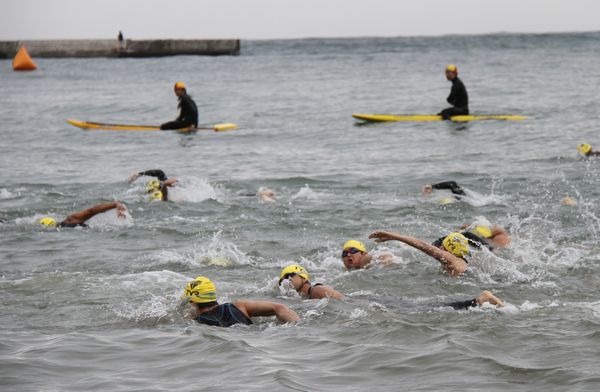 - 岩地海岸では、あいにくの悪天候の中ではありましたが、約120人の方が参加して、第1回オーシャンスイムレース大会が開催されました。