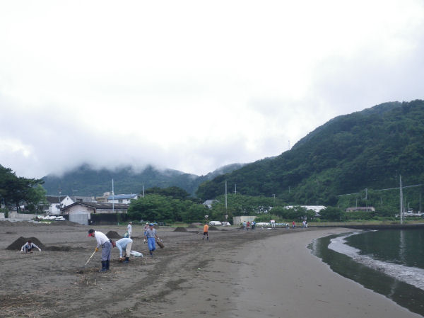 - 松崎海岸では、観光協会会員と地区の方が協力して清掃作業を行いました。