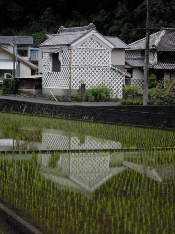- 町内では、ほとんどの田んぼで田植え作業が終わりました。船田地区では、田植えの終わった田んぼになまこ壁の蔵が映り込んでいました。