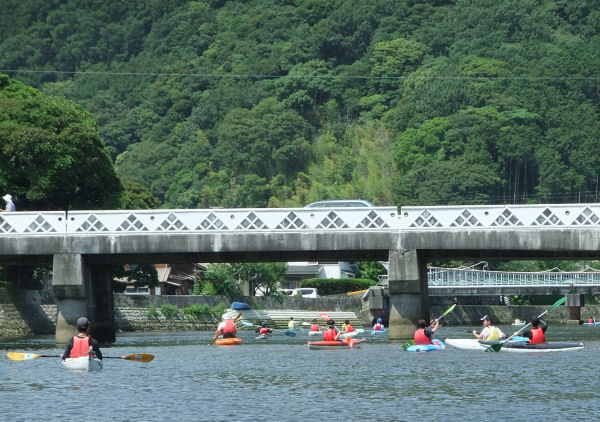 - 今日の海は風が吹き凪が悪かったため、海洋クラブでは、今シーズン初の川のぼりを行いました。 クラブ員達は、川の流れで思うように進まないカヌーと格闘ながらの訓練となりました。