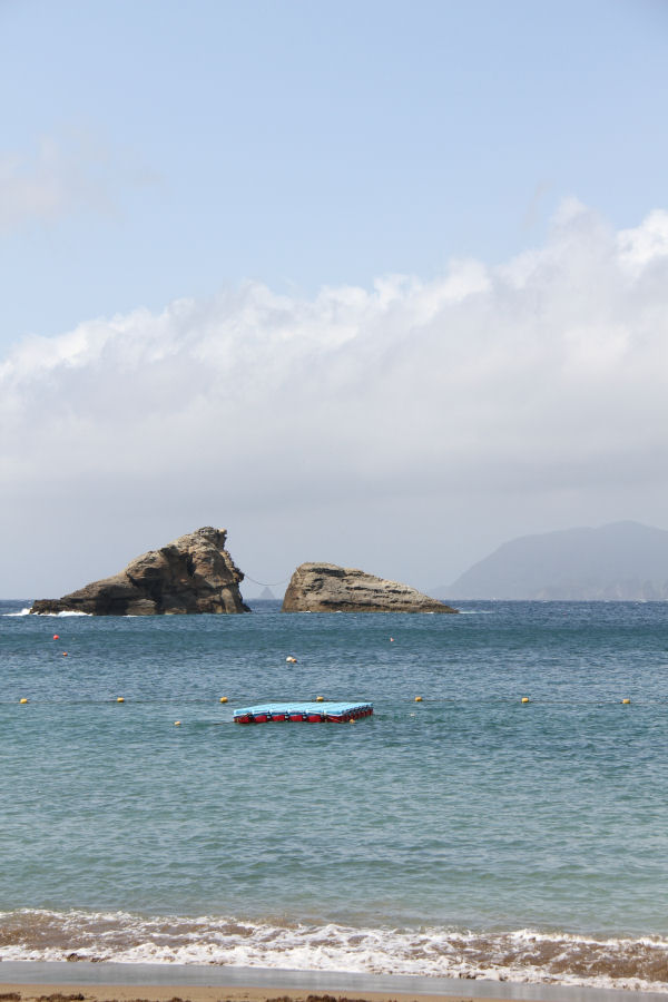 - ひさしぶりに良く晴れた天気となり、雲見海岸では、海水浴場開設のためのブイやフカンの設置が行われました。