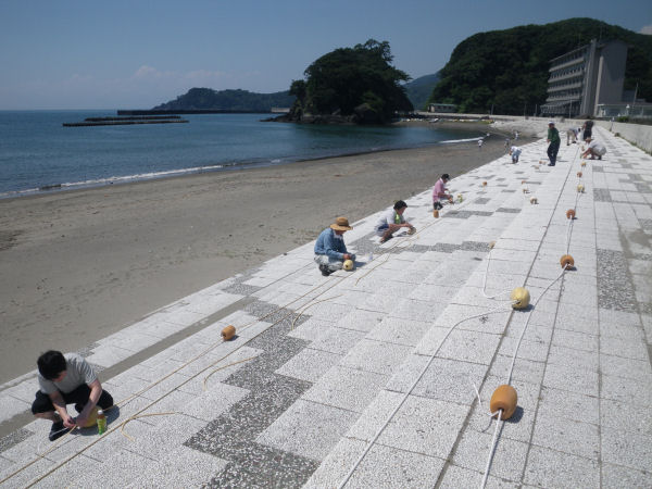- 松崎海岸では、観光協会や地元の皆さんにより、ブイやフカンの設置が行われました。