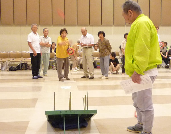 - 環境センター文化ホールでは、輪投げ大会が開催されました。団体の部は桜田睦会が、個人の部は江奈2区の長島さんがそれぞれ優勝しました。