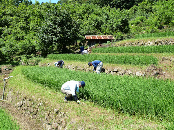 - 海では、少し台風の影響がありましたが、その他の場所では、少し強い雨と風程度でした。石部の棚田でも稲が倒れることもなく順調に成長しています。
