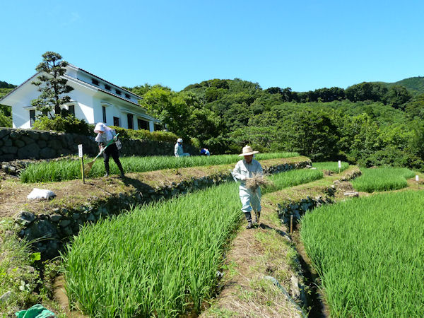 - 今日、東海地方の梅雨明けが発表されましたが、松崎町は厚い雲に覆われた1日となりました。石部の棚田では、今週末にオーナーの方々が集まり、刈り草の片付け作業が行われます。