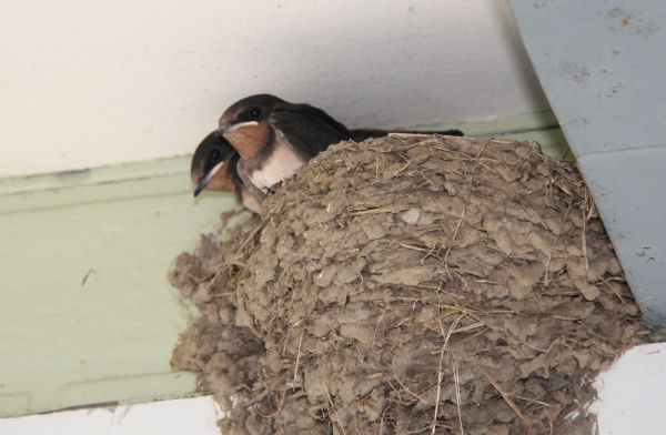 - 町内の民家の軒下などでは、ツバメの雛が元気に育っています。雛は、親鳥が食事を運んで来るのを呼ぶかのように元気に鳴いていました。