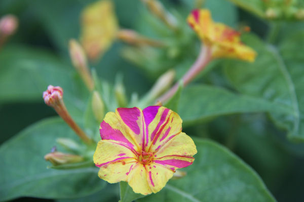 - 町内各所でオシロイバナが見ごろを迎えています。この花は日中は花を閉じ、夕方近くから開花してきます。