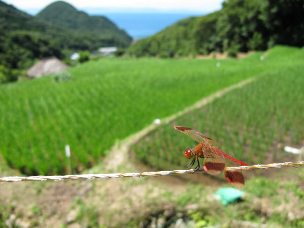 - 今日も暑い一日となりました。 石部棚田では、ミヤマアカネが風に乗り、棚田を飛び交っています。