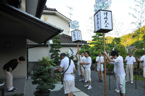 - 松崎地区では、夕方から天王祭が行われ、地区の若い衆が「サンゲ、サンゲ」と唱えながら地区内を練り歩きました。