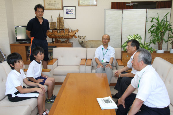 - 7月27日から姉妹都市の帯広市を訪問する松崎小学校6年生の代表が町長へ挨拶に訪れました。