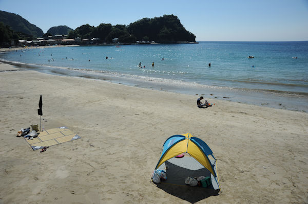 - 雲見海岸では、明日からの海水浴場開設を前に松崎警察署の臨時派出所が開設されました。