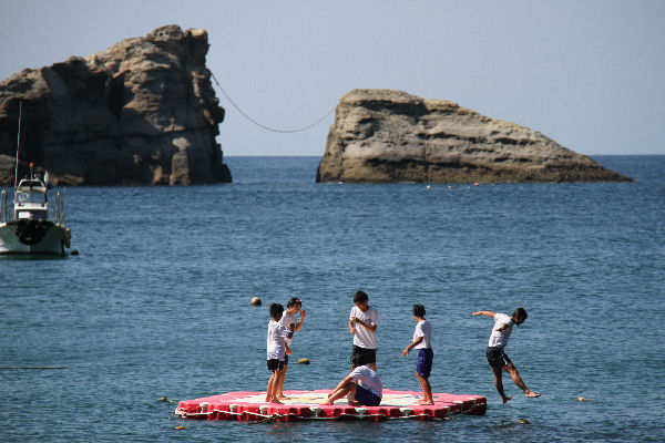 - 今日は、強い日差しの照りつける一日となりました。 涼を求めて、子どもたちが次々と海に飛び込んでいきます。
