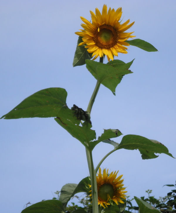 - 町内の花壇では、ヒマワリが大きく育ち、花を咲かせています。