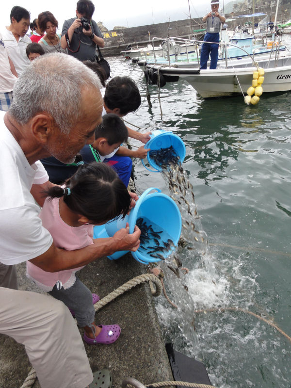 - 雲見港では、漁協青壮年部により、鯛の稚魚3万匹が放流されました。