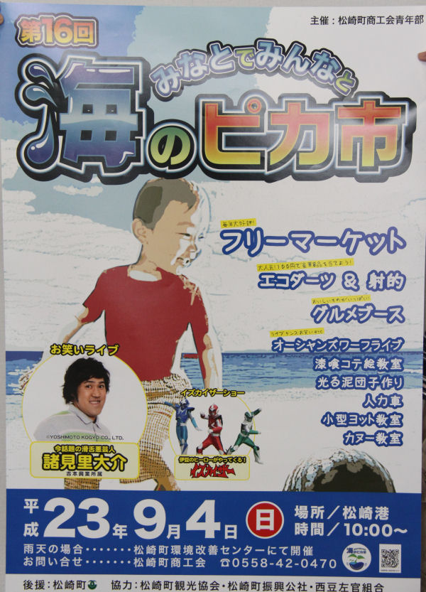 - 9月4日午前10時から松崎港を会場に開催される第16回みなとでみんなと海のピカ市のポスターが完成しました。