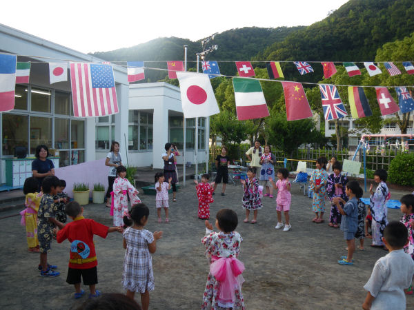 - 松崎町立岩科幼稚園では、夕涼み会が行われました。 浴衣を着た子どもたちが、盆踊りを踊ったり、きもだめしなどを行いました。