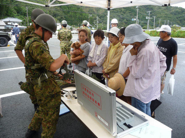- 道の駅花の三聖苑では、自衛隊による装甲車の試乗や自衛隊の救援資機材の展示などが行われました。
