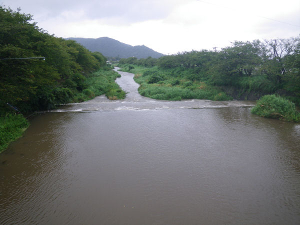 - 今日は、台風の影響からか時折、強い雨と風が吹く1日となり、町内を流れる河川は茶色く濁り、増水していました。