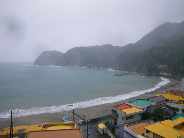 - 普段は、波静かな岩地海岸ですが、今日は波が高く、海岸や岩場に強く打ち寄せていました。