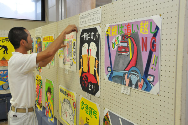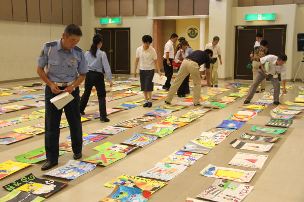 - 環境センターでは、小中学生が夏休み中に描いた交通安全ポスターの審査会が行われました。