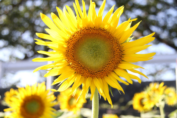 - 商工会青年部では、福島のヒマワリを育て、種を収穫し、その種を福島へ送る事業を行っています。部員の方たちが当番で水くれをしているおかげなのか、ヒマワリが一斉に開花しました。