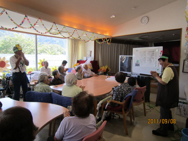 - 本日人権擁護委員が社会福祉施設デイサービス松崎を訪問し、「人権って何?」の寸劇を行いました。 最後は、ハーモニカに合せてみんなで楽しく歌を歌いました。