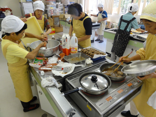 - 環境センター調理室では、ひまわり会の皆様が高齢者世帯へ配布する給食作りをしていました。