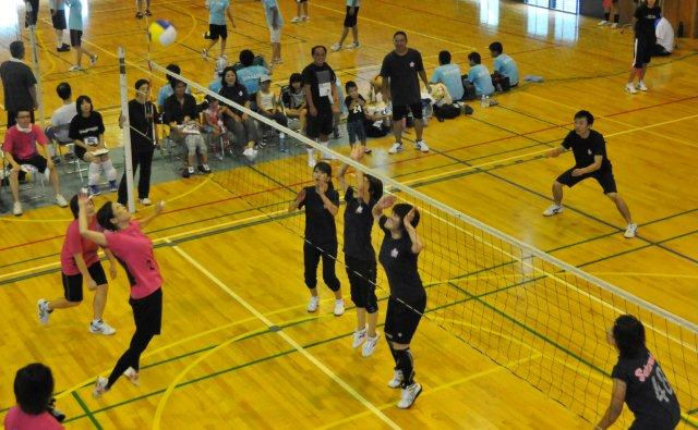 - 勤労者体育館では、町内8地区が参加して地区対抗バレーボール大会が開催されました。 2部リーグ戦での勝者で決勝戦を行い、岩科・石部地区が2年連続の優勝に輝きました。