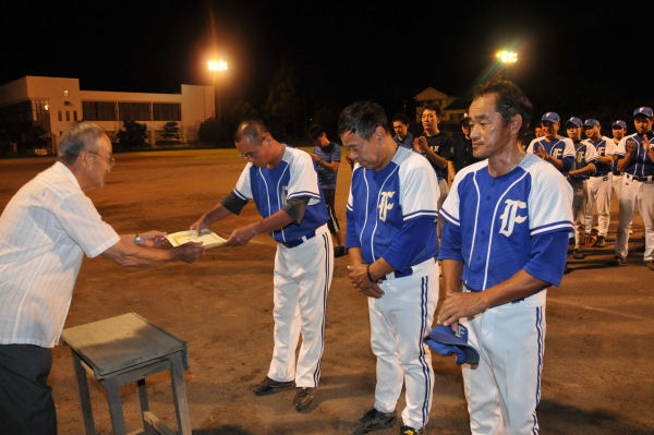 - 総合グラウンドでは、平成23年度花とロマンソフトボール大会の決勝戦が行われました。町内9地区が参加し、トーナメント方式で熱戦を繰り広げた結果、船田チームが優勝しました。