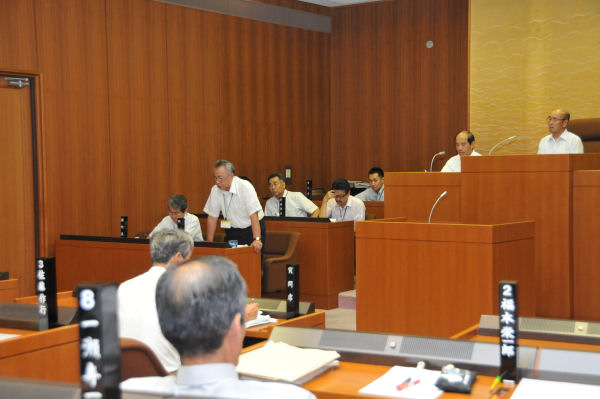- 役場議場では、松崎町議会第3回定例会が今日から開会されました。初日となる本日は、町長の行政報告や一般質問が行われました。