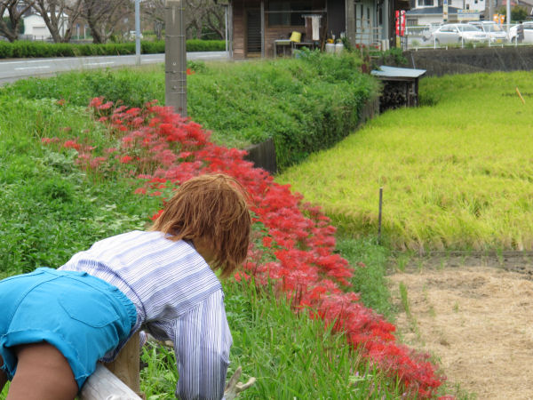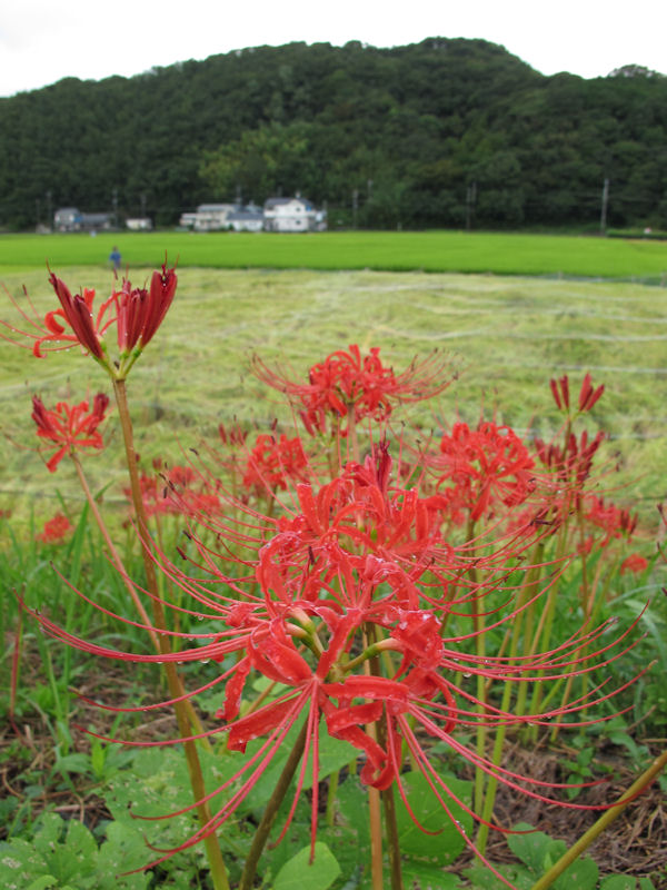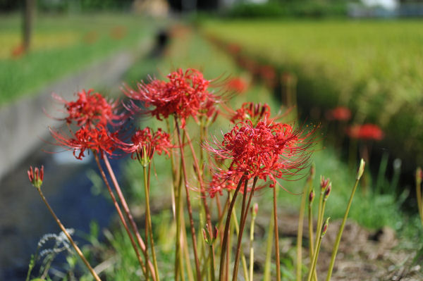 - ころ合いを見計らっていたのか、彼岸花が一斉に花を見せ始めました。 田んぼの畦などが、紅い花で鮮やかに彩られていきます。