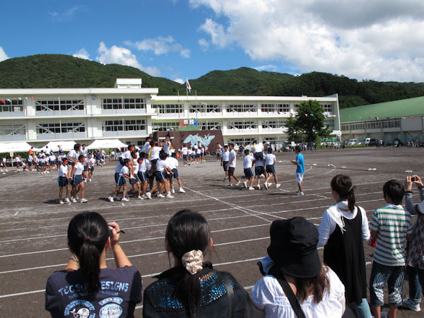- 晴天の中、松崎小学校では運動会が開催されました。 リレーでは、観客から大きな声援がかけられ、競技が一層盛り上がりました。