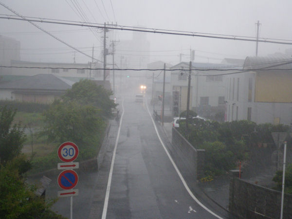 - 台風の直撃は免れたものの、時折強い風が吹き付け、大きな雨粒が降りつける天候となっています。