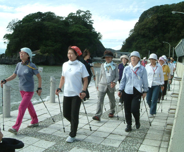 - 西伊豆町との共同開催で健康作りのためノルディック・ウォーキングの教室を行いました。 ノルディック・ウォーキングは身体全体を使う有酸素運動の一つです。 第1回目の今日は、松崎海岸沿いを歩き参加者の方たちは心地よい汗を流していました。