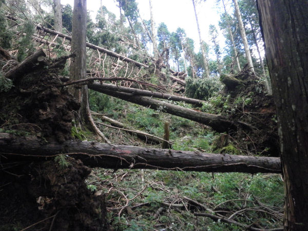 - 昨日の台風の影響を確認するため、長九郎山遊歩道を点検しました。 点検の結果、富貴野山〜八瀬峠、長九郎歩道は強風による崩落・倒木などで歩道の状況が非常に悪く、しばらくの間通行禁止とさせていただくこととなりました。 一日も早い復旧に努めてまいりますので、ご理