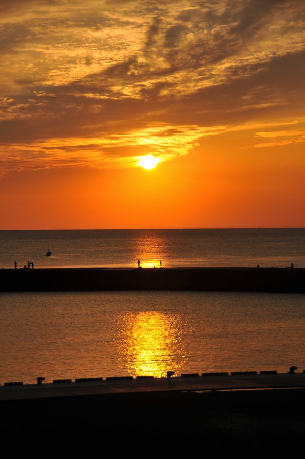 - 今日は、海岸線からとてもきれいな夕日を見ることができました。