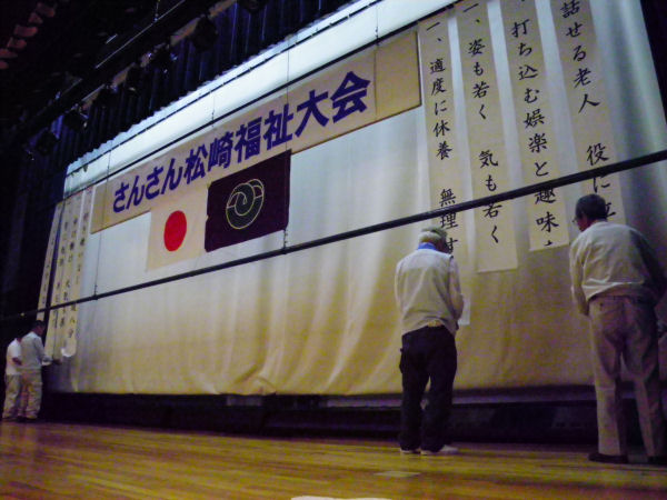 - 明日、松崎町環境改善センター文化ホールにて開催される平成23年度さんさん松崎福祉大会の準備が行われました。 当日は、講演や演芸大会が行われる予定です。