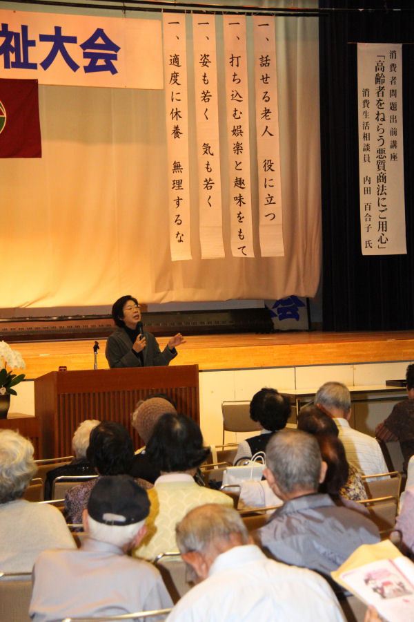 - さんさん松崎福祉大会にて、裾野市消費生活相談センターで相談員をされている内田さんを講師にお招きし、「高齢者をねらう悪質商法にご用心」を演題に記念講演をしていただきました。