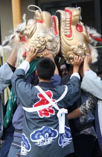 - 今日から明日にかけて松崎町内では、秋祭りが行われています。松崎地区では、朝から獅子舞が行われました。