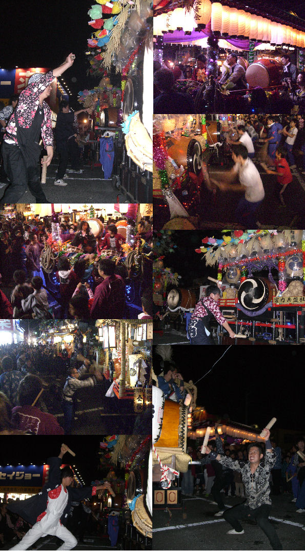 - 夜になると、ドラッグストア駐車場に3社(桜青会:桜田、伏青会:伏倉、共盟社:宮内)が参集し、大勢の観客の前でたたき合いを披露しました。