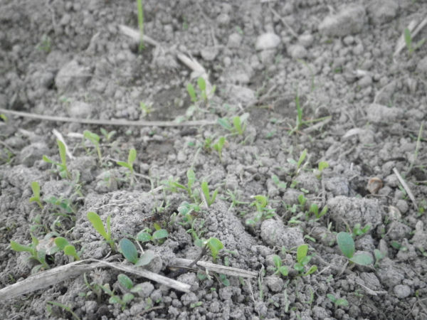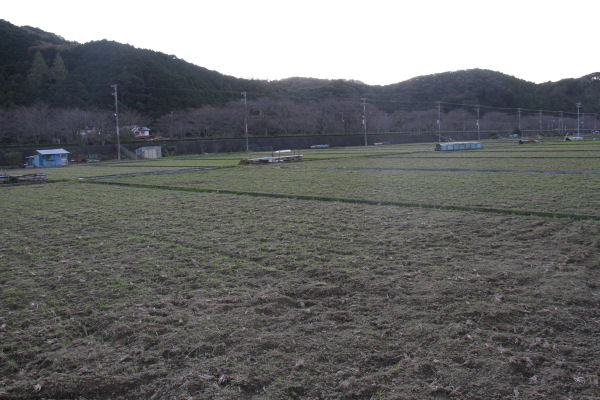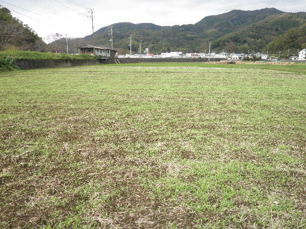 - 那賀花畑で、試験的に早蒔きした田んぼの状況です。 アフリカキンセンカ、姫金魚草の葉が識別できる位まで成長してきました。
