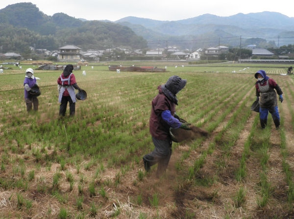 - 昨日に引き続き、那賀地区の田んぼでは、花畑にするための種まき作業を行っています。