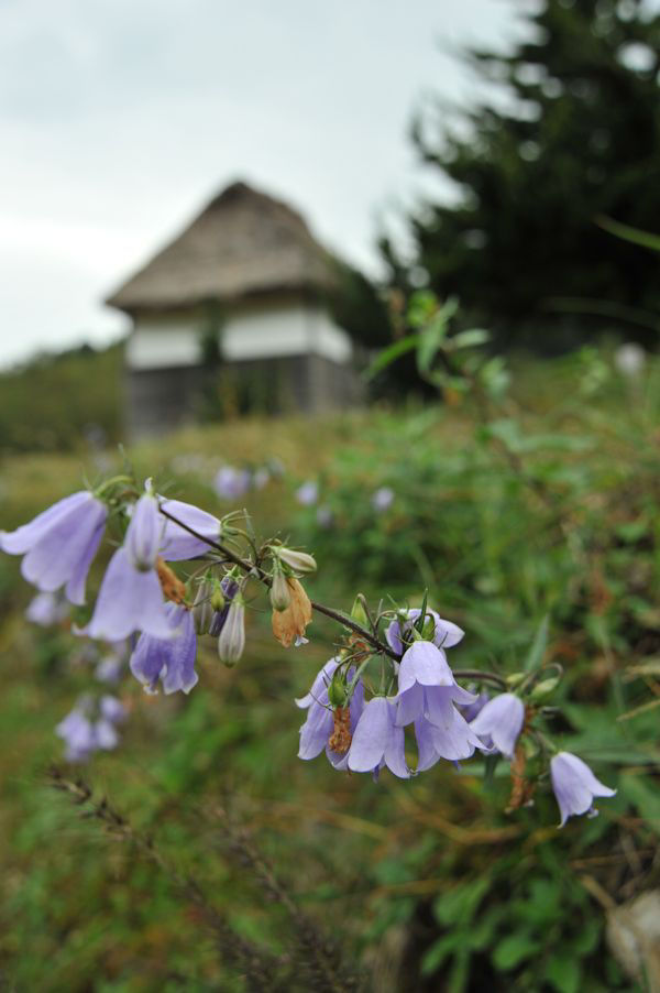 - 石部の棚田では、アゼなどでツリガネニンジンが小さい鐘状の花を咲かせています。