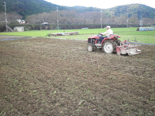 - 那賀耕地では、昨日の雨により延期となった耕運作業が本格的に開始されました。
