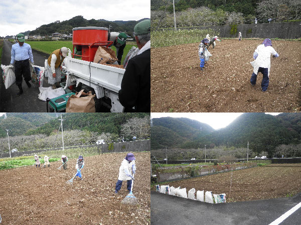 - 那賀地区の田んぼをつかった花畑では、稲の収穫も終わり、花畑にする準備が進んでいます。今日は松崎町シルバー人材センターの方々が肥料をまく作業を行いました。
