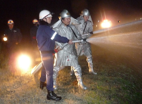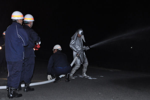 - 昨晩、総合グラウンド付近で火災が発生したことを想定した消防団の夜間放水訓練が行われました。これから冬に向かい、空気が乾燥してきますので、火災を起こさないように火の元に注意しましょう。