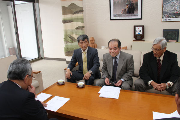 - 地域の歴史などを研究している有志の方たちが役場を訪れ、江戸時代中期に書かれた古文書に基づいた富貴野山の空海伝説についての調査結果を町長へ報告しました。